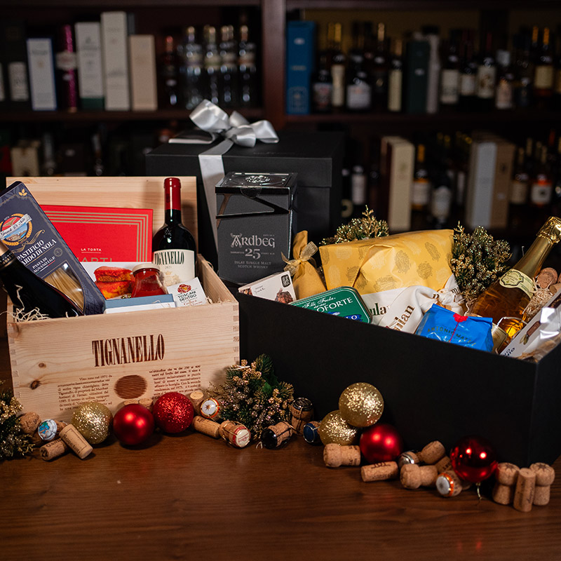 Che sia Natale, Pasqua, un matrimonioo un semplice omaggio realizziamo composizioni di vino e/o alimentari a seconda delle vostre richieste in eleganti confezioni e con la possibilità della consegna a domicilio.